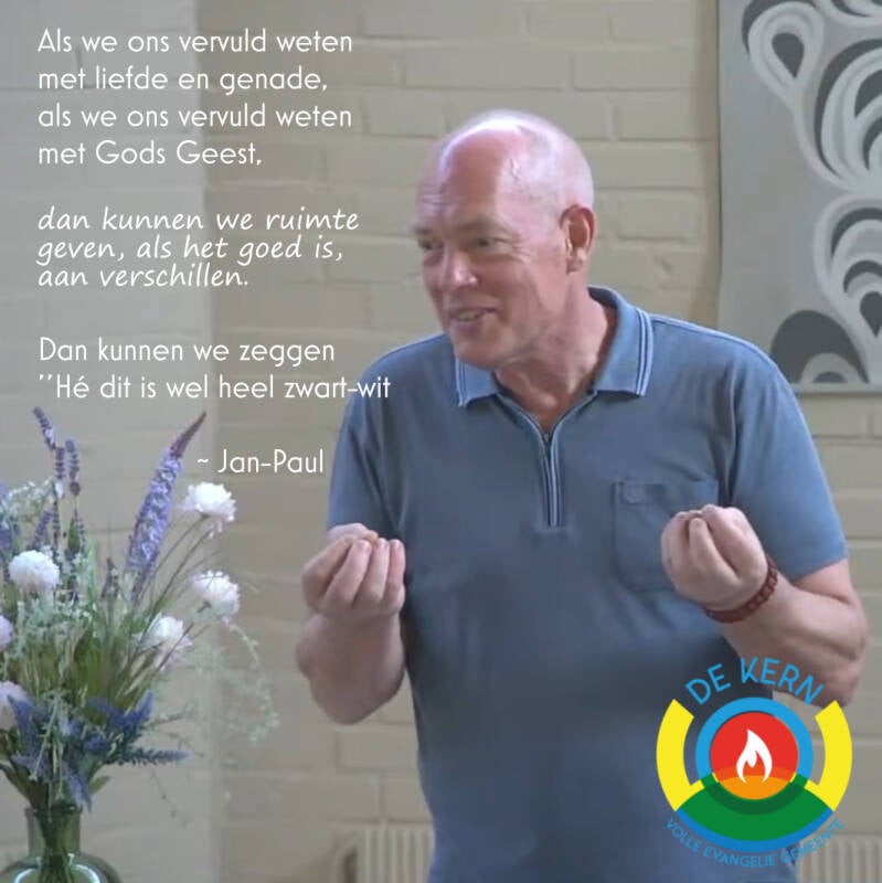 Wij mogen leren leven met de soms wat complexe dingen van Gods Koninkrijk en de tegenstellingen die je daarin ervaart. Maar we mogen ook allemaal leren leven met het ‘’niet allemaal weten’’. Durf ook gewoon toe te geven dat je niet alles begrijpt Succes met de brede meerkleurige blik!