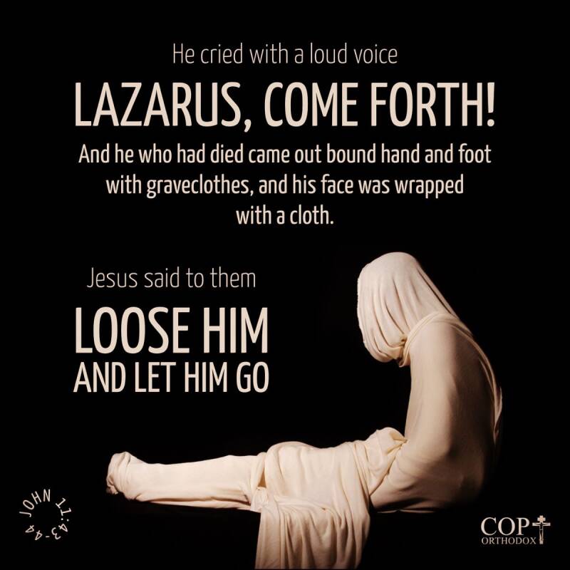 Maandag plaatste ik al 1 van de vele plaatjes over Lazarus op mijn Facebooktijdlijn, altijd leuk voor de kinderkerk … maar vandaag las ik wat er echt staat in vers 43-44 : ‘’ En na dit gezegd te hebben, riep Hij met luider stem: Lazarus, kom naar buiten! De gestorvene kwam naar buiten, de voeten en de handen gebonden met grafdoeken, en er was een zweetdoek om zijn gelaat gebonden. Jezus zeide tot hen: Maakt hem los en laat hem heengaan.’’ NBG51 … handen-voeten-zweetdoek …da’s toch wat anders dan zo’n mummieplaatje … en de omstanders mochten hem ontwikkelen de wikkels eraf halen voor echte vrijheid; ook nog eens een studie waard.