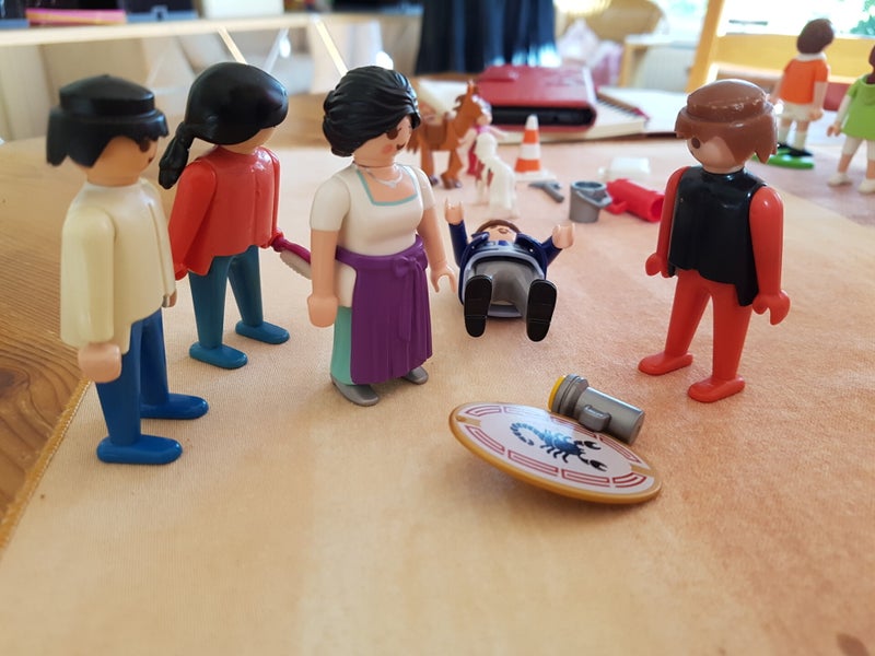 Een vorm van gesprekvoeren waar ik de afgelopen jaren erg van gecharmeerd ben geraakt is het gebruik maken van Playmobil. Bij het formuleren van de hulpvraag wordt d.m.v. poppetjes de situatie van de hulpvrager in beeld gebracht en besproken. Door een situatie van bv familie; een vriendenclub; een schoolherinnering m.b.v. poppetjes neer te zetten en er dan over te spreken geeft dat meerwaarde. Meer dan bij praten over is er een visuele (zichtbare) component die inzicht geeft. Dit inzicht geeft de hulpvrager regelmatig net die kijk om een volgende stap te kunnen nemen en/of letterlijk te zien waar het wringt.